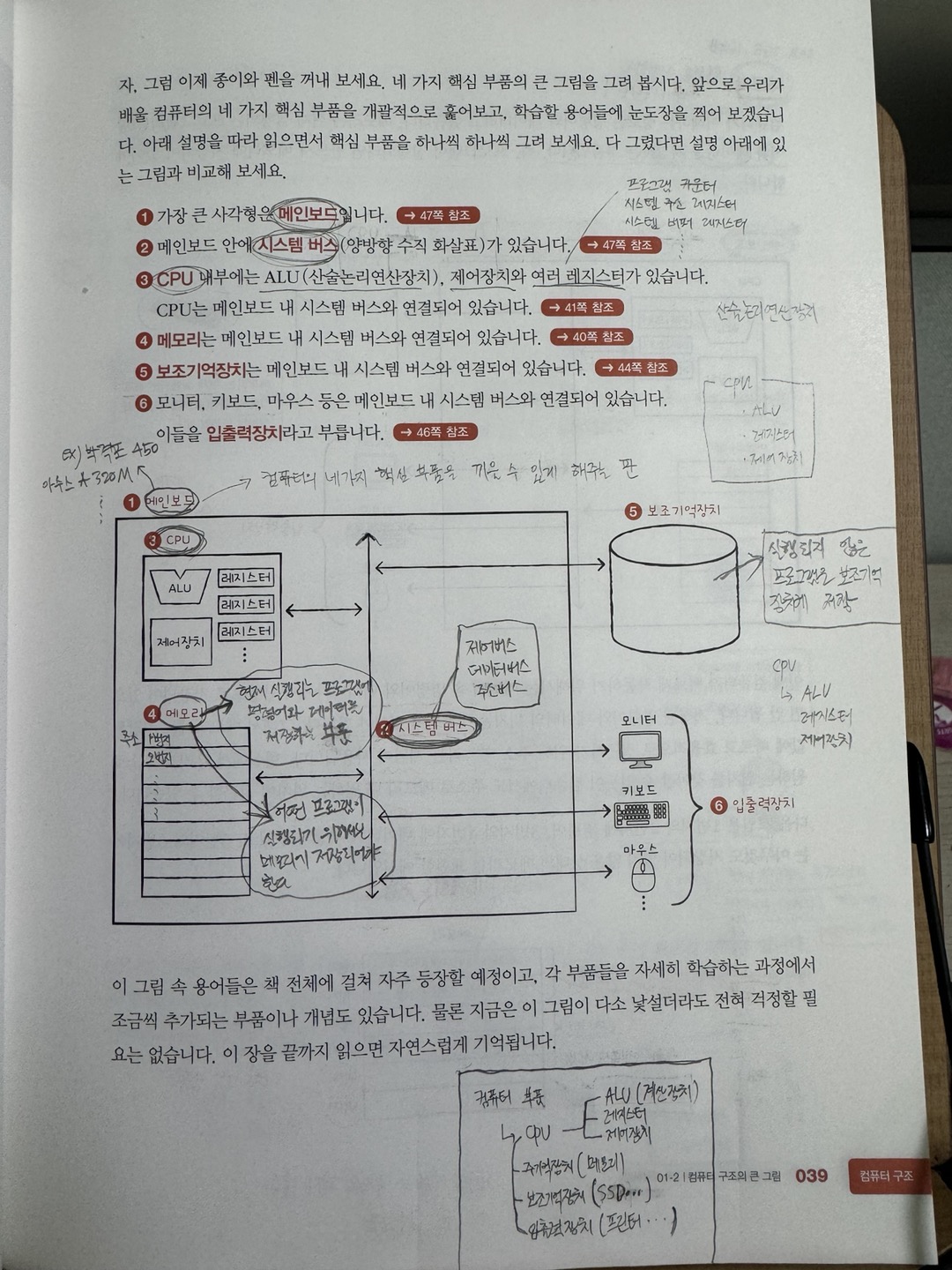 - 입출력장치 : 컴퓨터 외부에 연결되어 컴퓨터 내부와 정보를 교환하는 장치