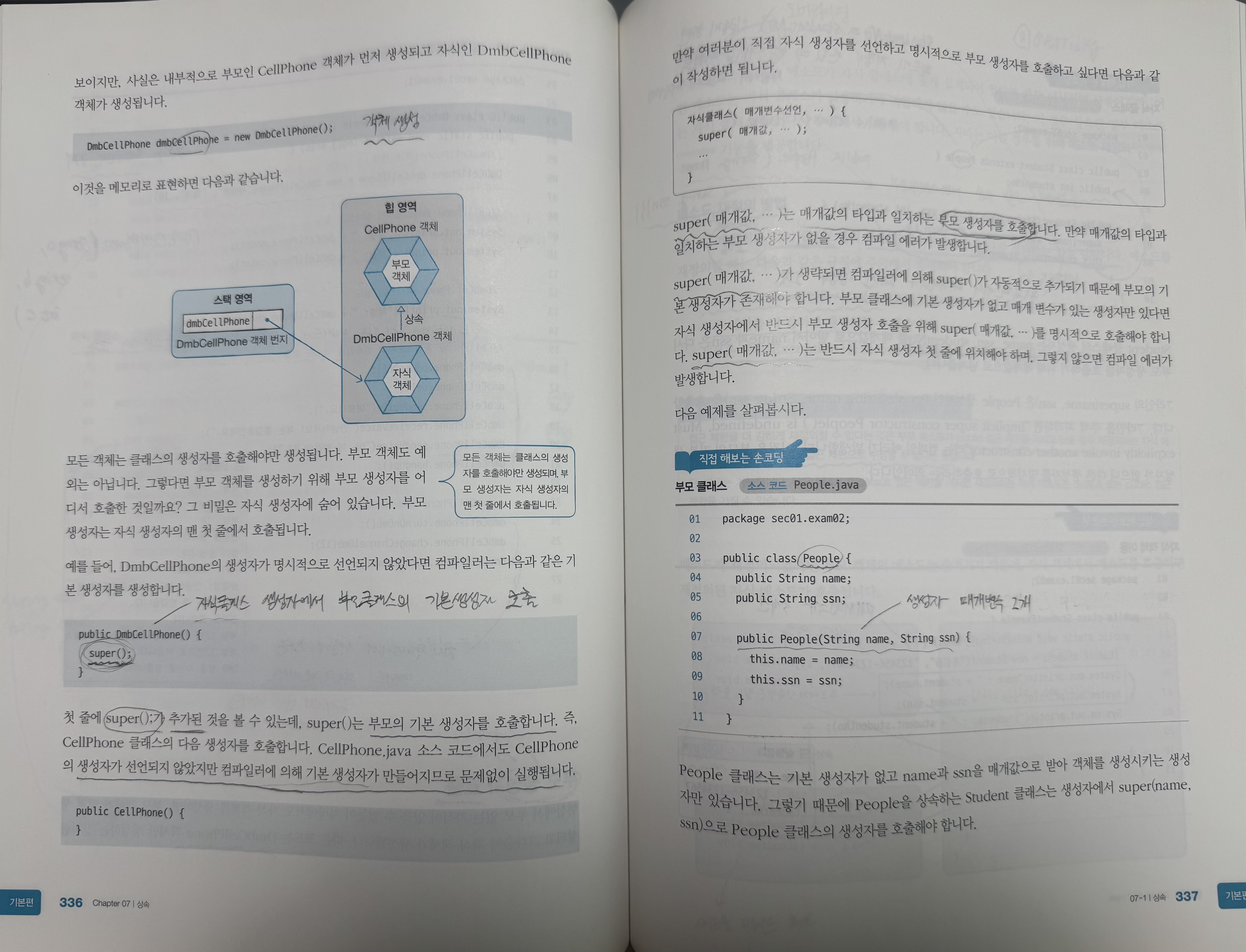- 부모 생성자를 명시적으로 호출하려면 super() 사용.